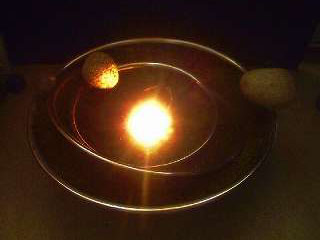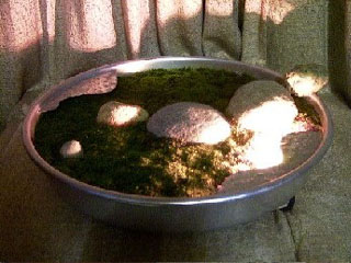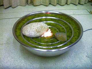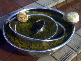 素材=スナゴケ・ステンレス・アルミ・自然玉石・15w照明・移動用キャスター